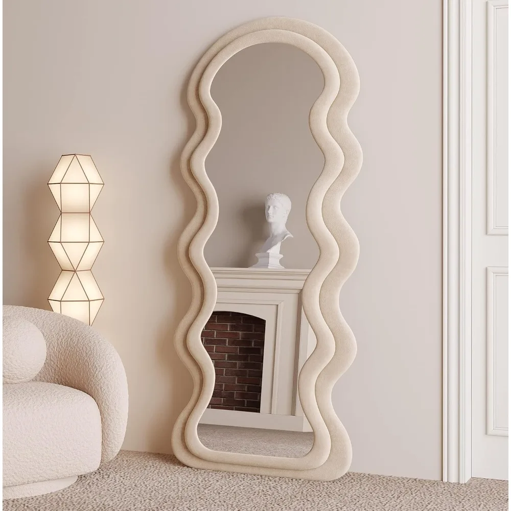 - WAVY DESIGN: The shape of the full length mirror uses an irregular design. The wavy shape makes the entire mirror looks unique. It is very conspicuous in any space and makes your room look tasteful.