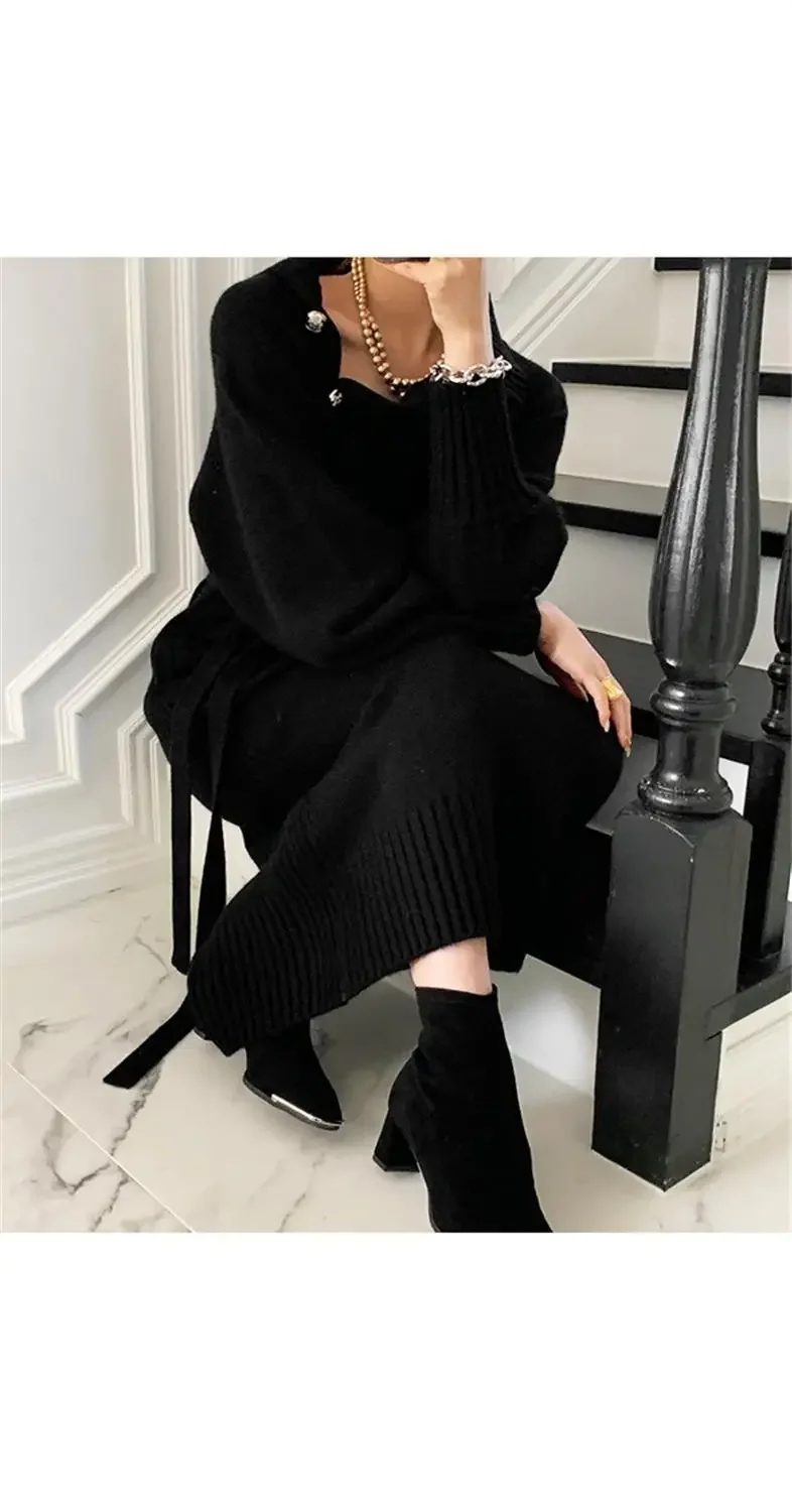 • High Collar Design : The high collar design adds a touch of retro chic to this knitted dress, perfect for autumn and winter styling.