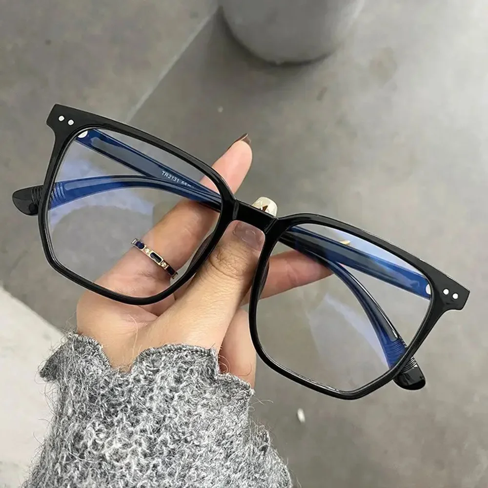 Fashion Black Frame Glasses Retro Square Anti-blue Light Flat Glasses Lightweight Non-Prescription Eyewear UV Protection Lenses