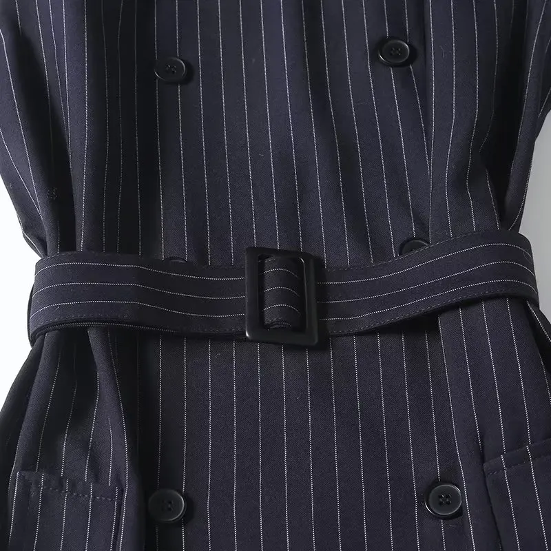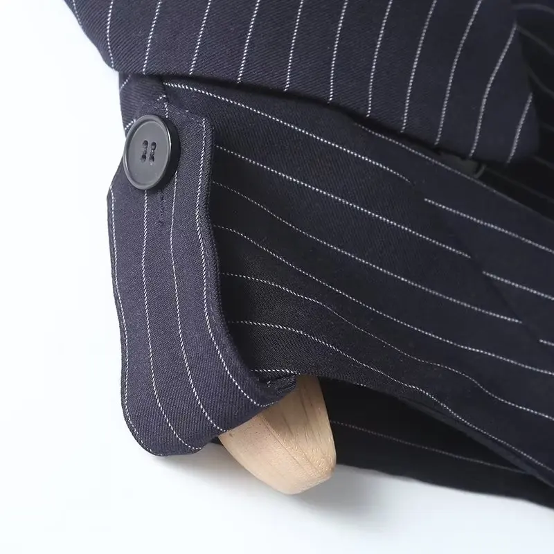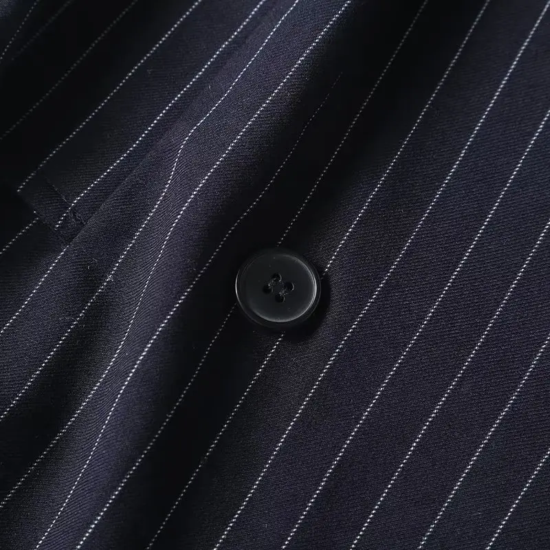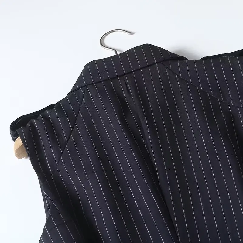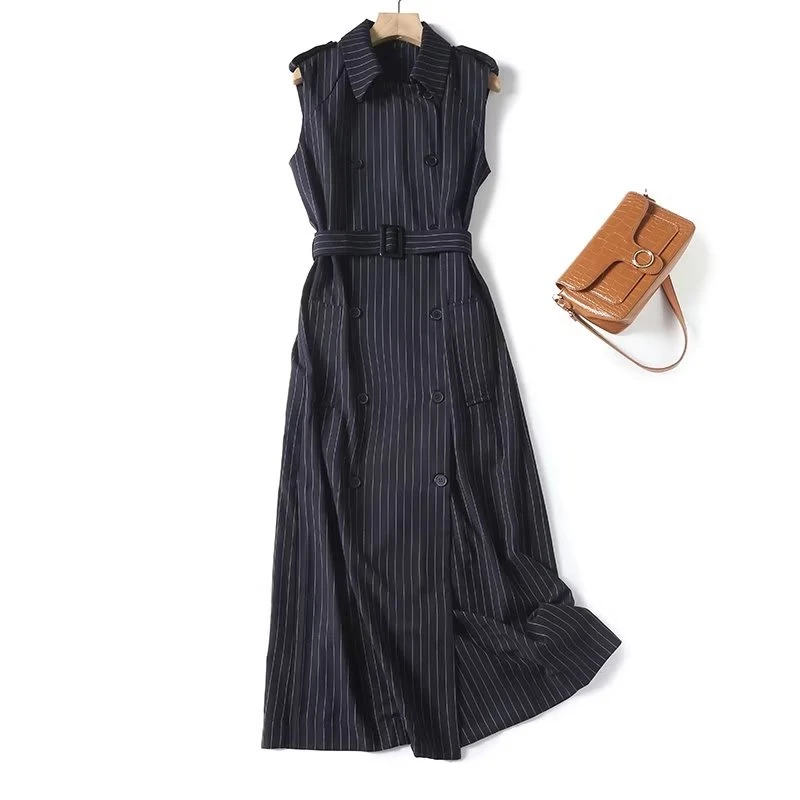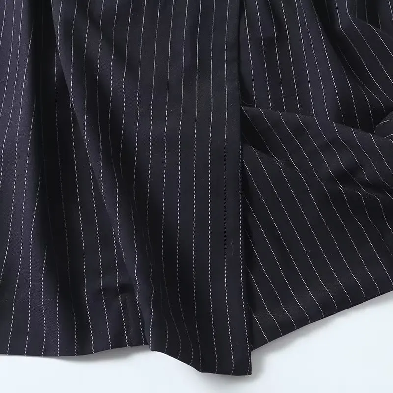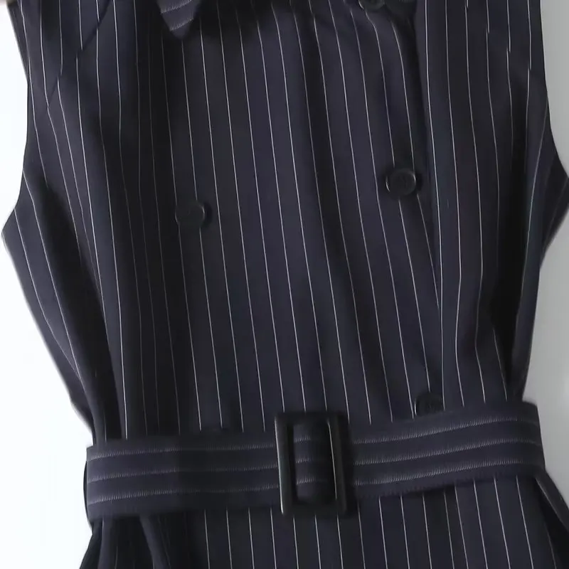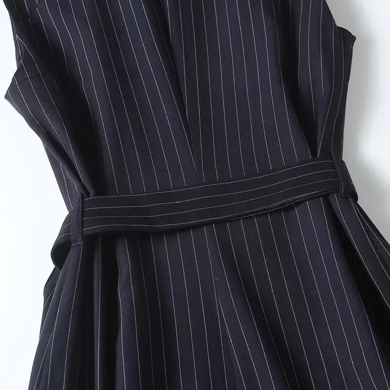 Maxdutti Autumn New French Fashion Navy Dress Women Striped Sleeveless Suit Dress Office Ladies Retro Elegant Midi Vest